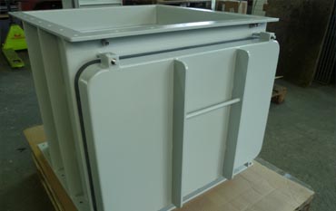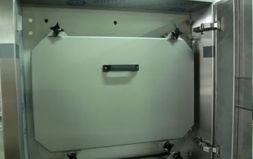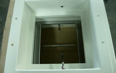 Schwebstofffiltergehäuse Edelstahl mit Mauerrahmen und Blende